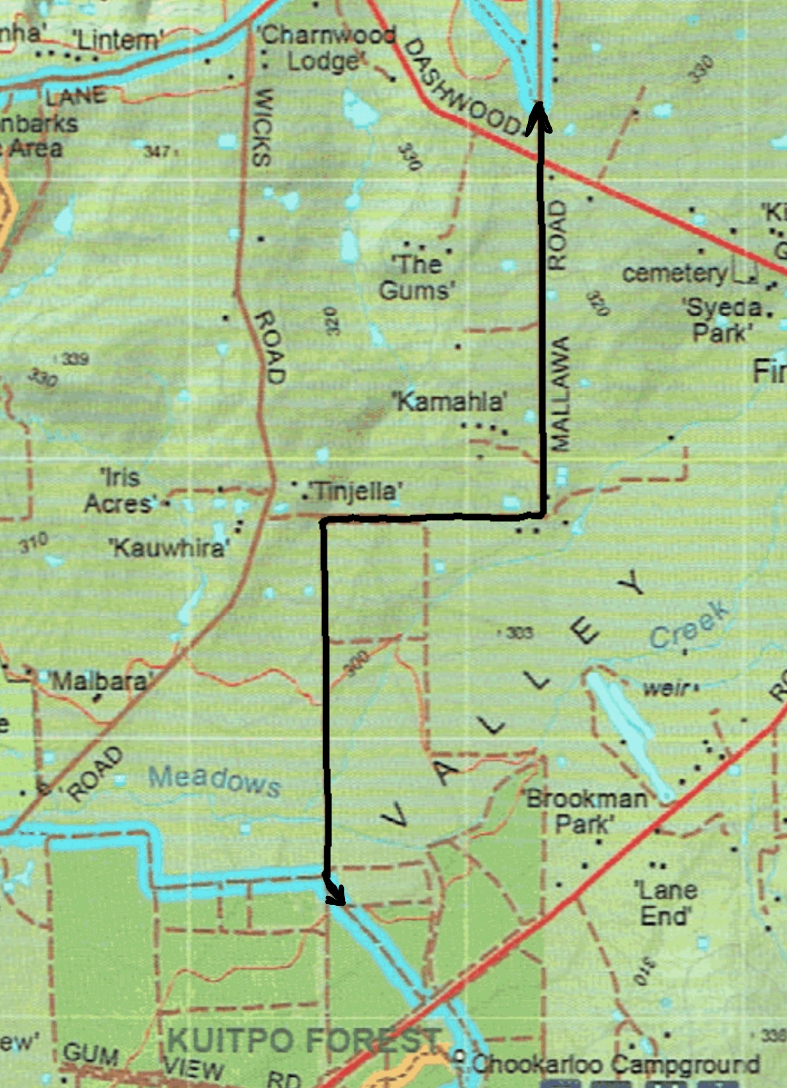 This re-reoute applies to: Section 10: Kyeema to Dashwood Gully